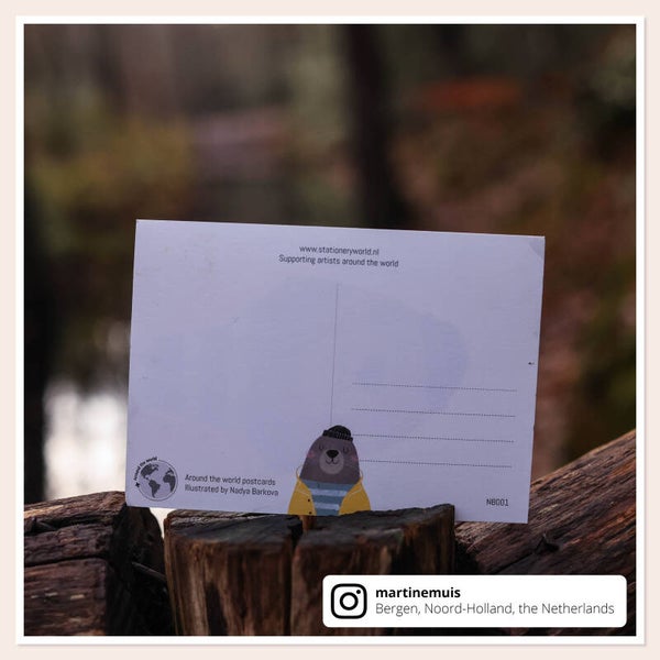 De ansichtkaarten zijn gemaakt van enkelzijdig gestreken sulfaatkarton, met een matte coating. De ansichtkaarten zijn hierdoor erg stevig en de achterkant is prettig om op te schrijven. De ansichtkaarten hebben een A6-formaat (10,5 x 14,8cm).